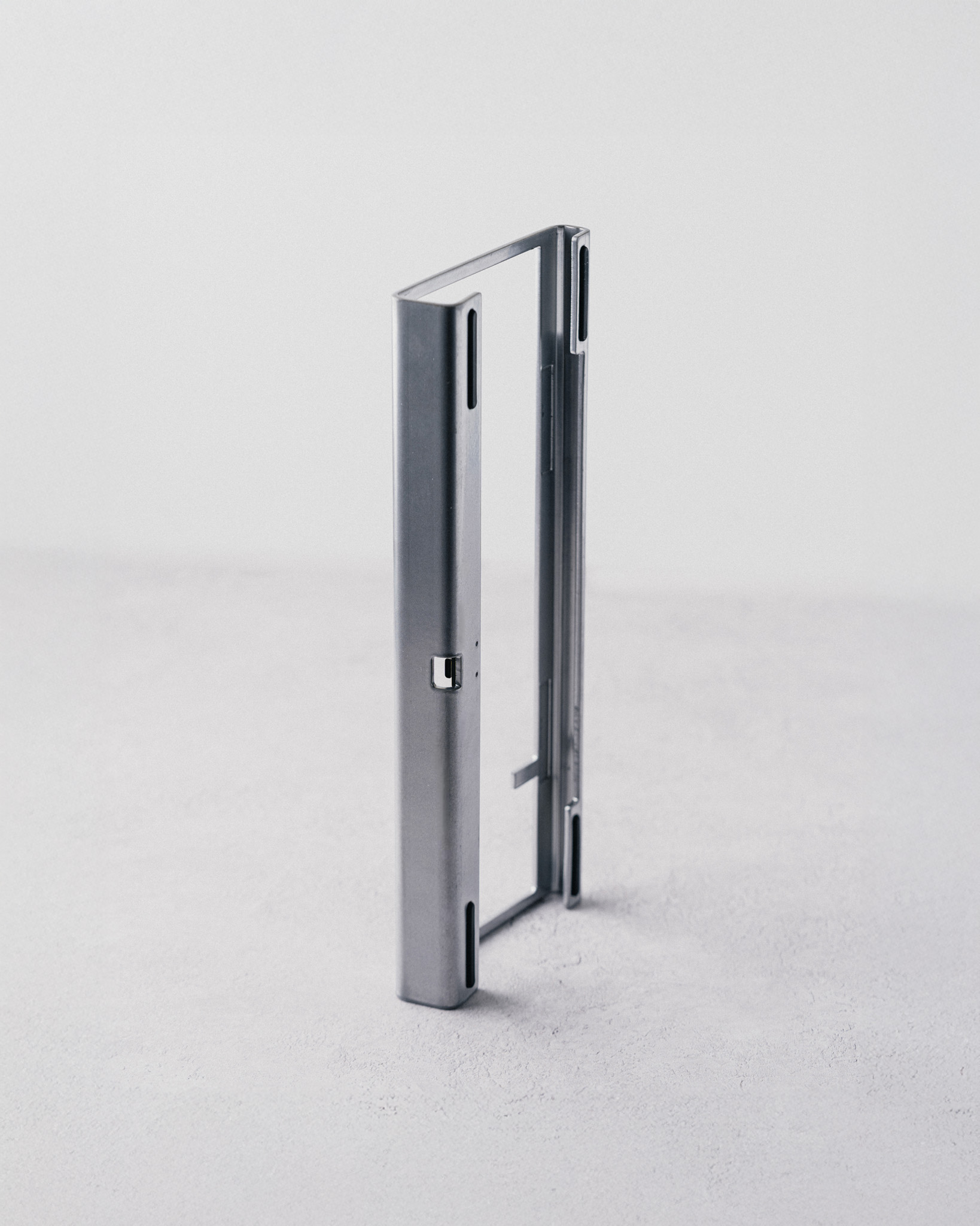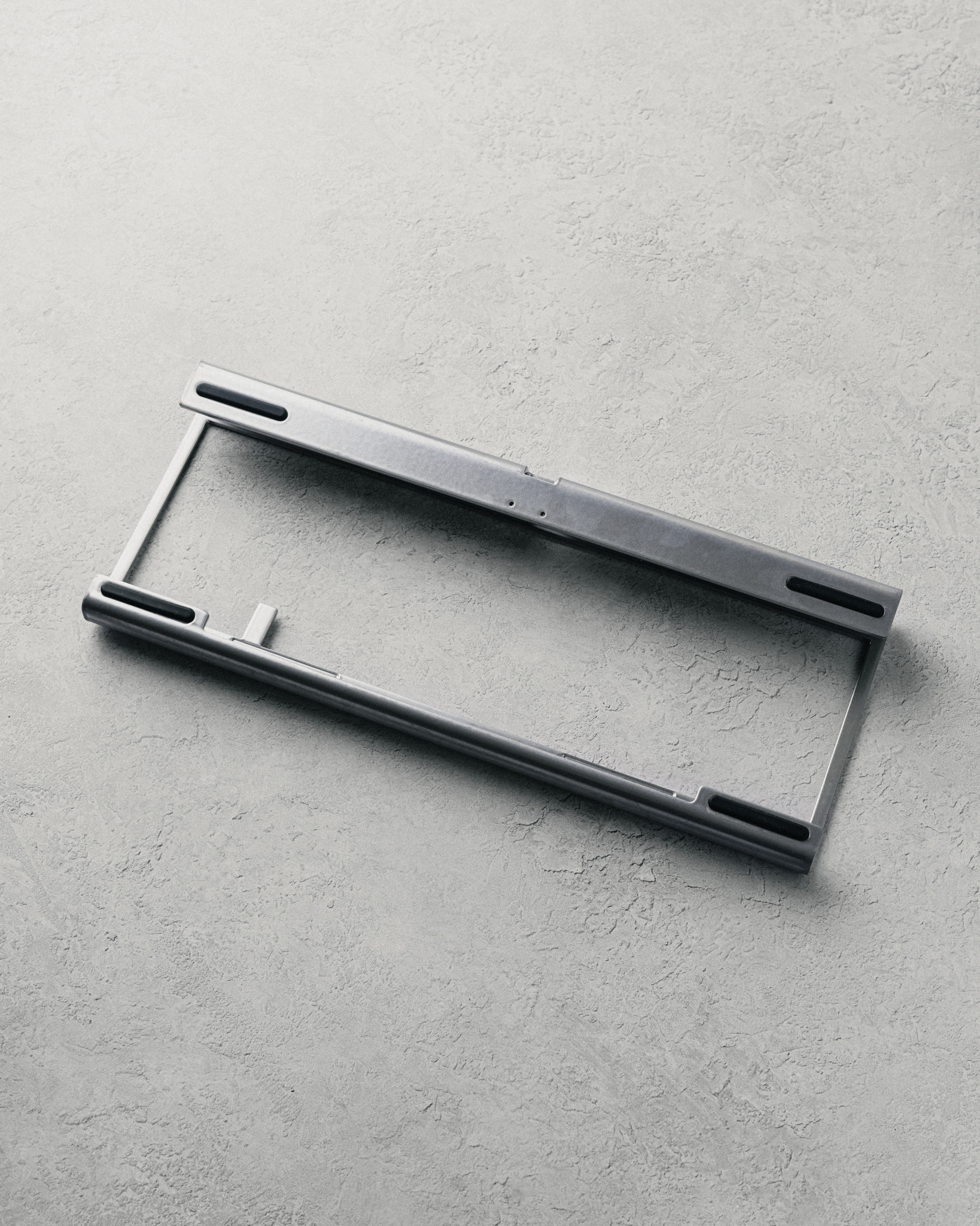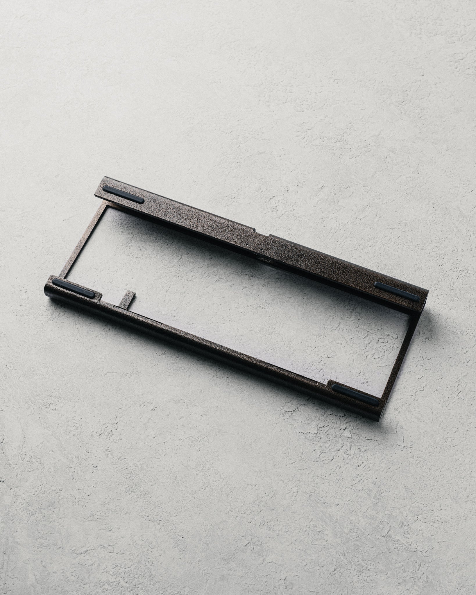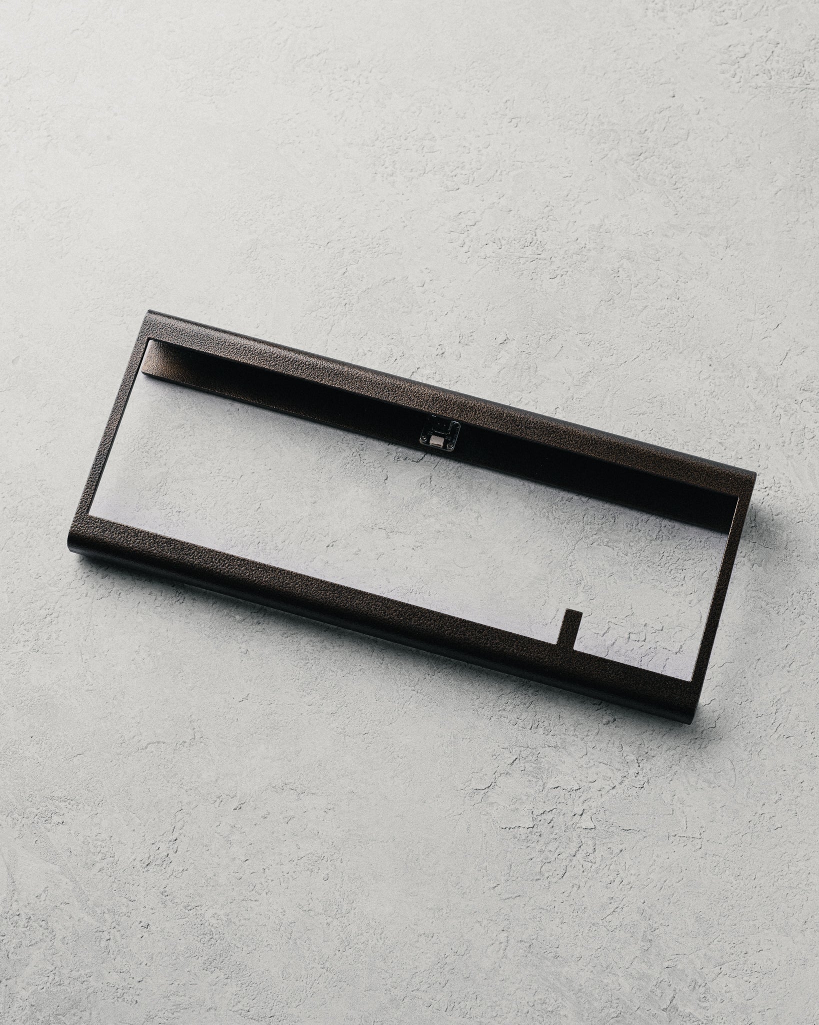 A bent steel 65% keyboard assembled with magnets for an open-air design.