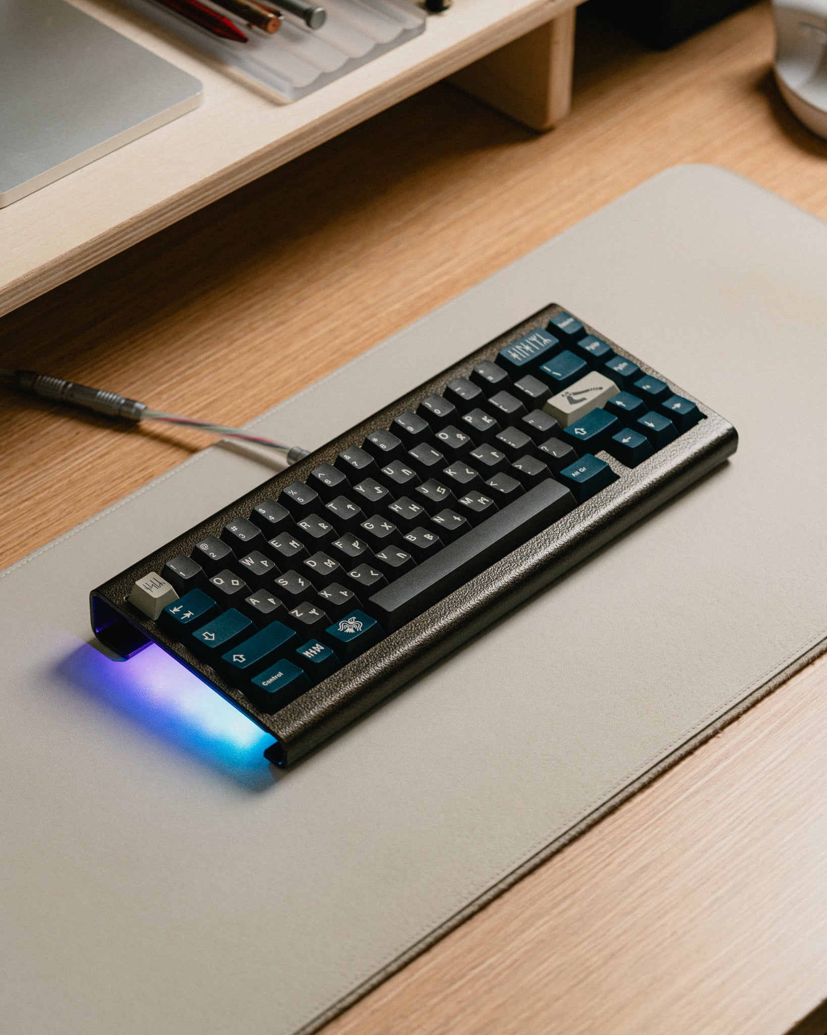 The magnetic top mount provides a firm yet responsive typing experience and facilitates easy tuning due to the screwless design. The unique powdercoated finish will make this board pop in any setup, and the VIA compatible hotswap PCB with RGB underglow makes this board accessible for all - no soldering required.